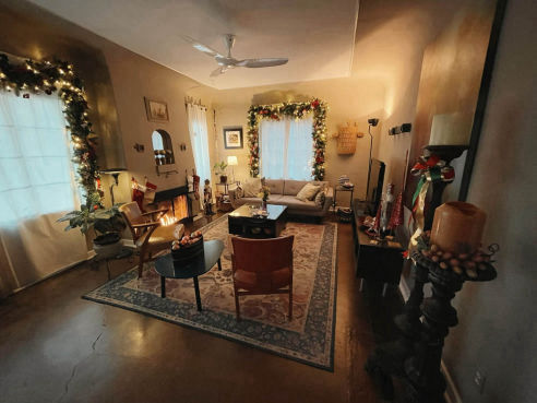 Margaret Brown recalled that the house was painted cream when she and her husband moved in during the summer of 1935. Just off the dining room was a screened-in room with a cement floor. Margaret later hired Edna Green, who she said was THE designer of the time, to help her with house renovations. One of those touches included installing French doors from the dining room to the screened-in patio.